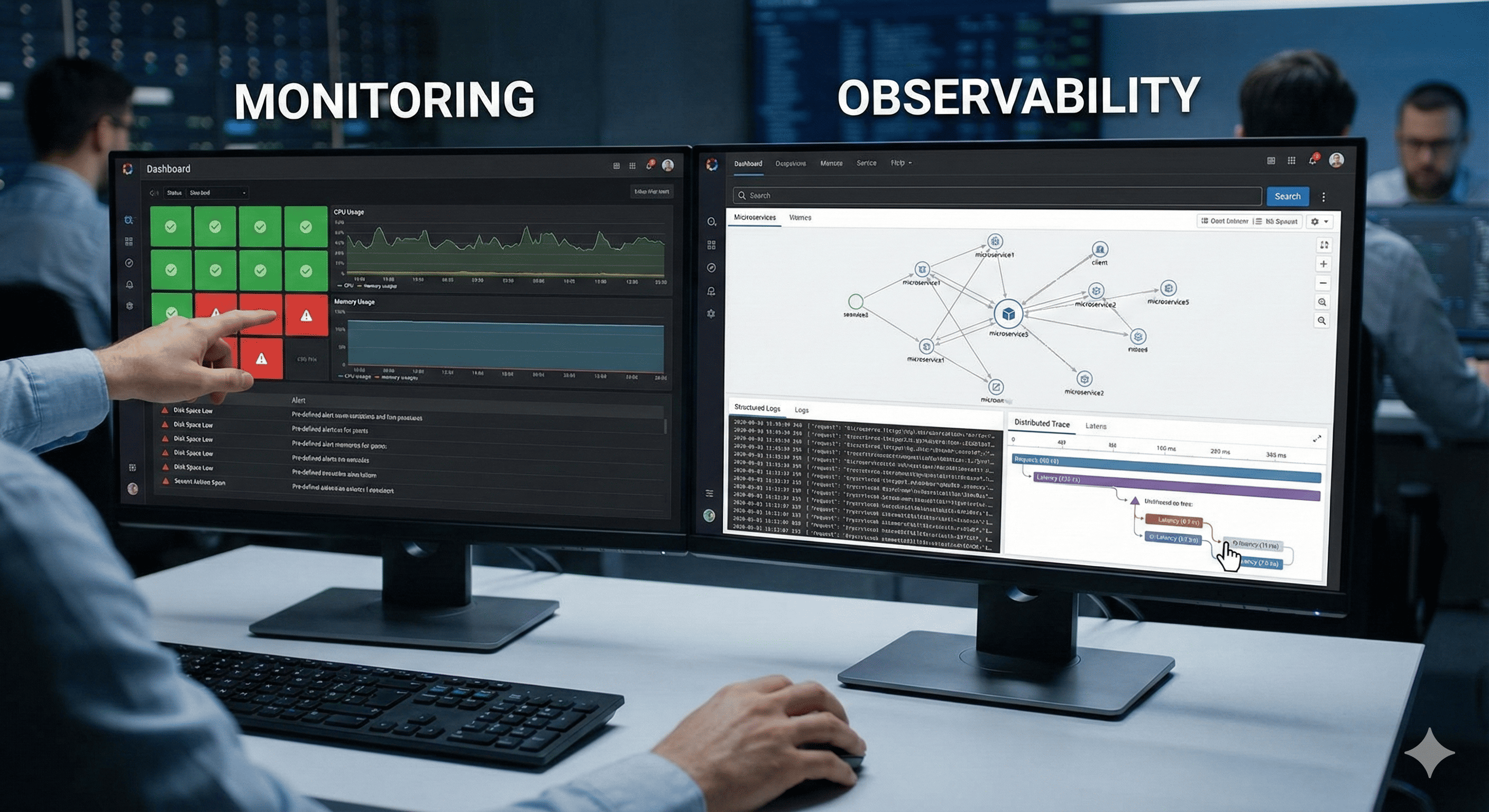Monitoring confirms expected health with metrics, thresholds and alerts. Observability explains the why behind failures and latency by correlating logs, metrics and traces. This vendor-neutral guide clarifies similarities and differences, when to use each, and a practical rollout plan for SRE/DevOps teams.